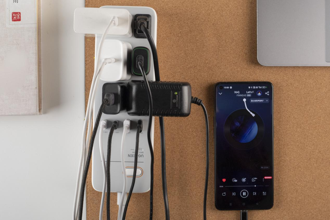 绿联的65w氮化镓排插除了具备三个2孔插位和三个2 3插位外,还配置了2个type-c接口2个usb-a接口,它可以为4台设备同时充电,一桌子的用电设备,它一台就搞定!