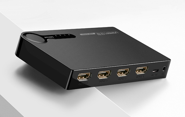 hdmi切换器就应运而生了,它的主要功能就是实现多个输入设备的切换。hdmi切换器一般有三个以上输入口,一个输出口,所以也叫x进一出,可参照下图hdmi三进一出切换器: