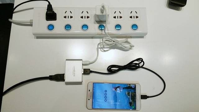 1:用视频线连接好产品和电视(注意调整电视的信号源),其次务必要接好供电,也要保证连接手机的线支持传输数据,但是先不要接手机。
