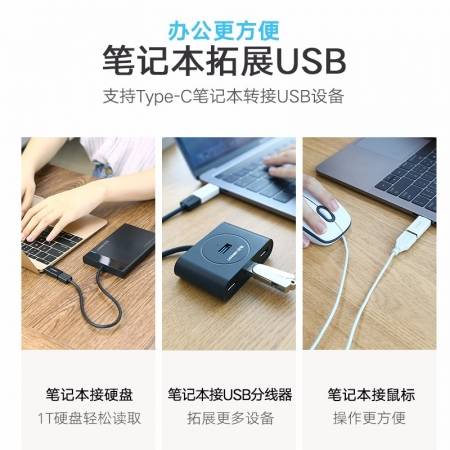 绿联usb 3.0转type c转接头适用于普通电脑连接type-c公头凯发k8ag旗舰的设备,如硬盘、硬盘盒、手机、平板等