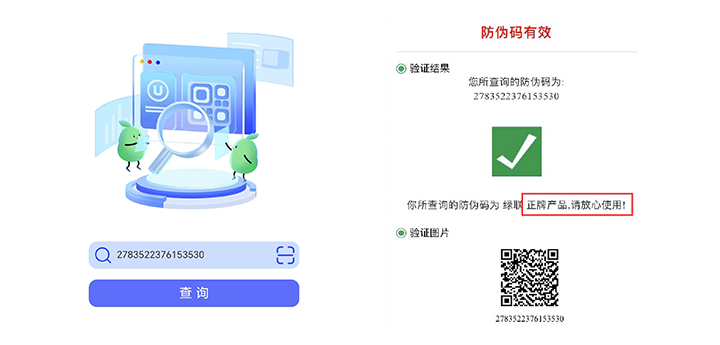 2. 手机扫描二维码,点击“查询”即可。正品查询结果如下图所示;